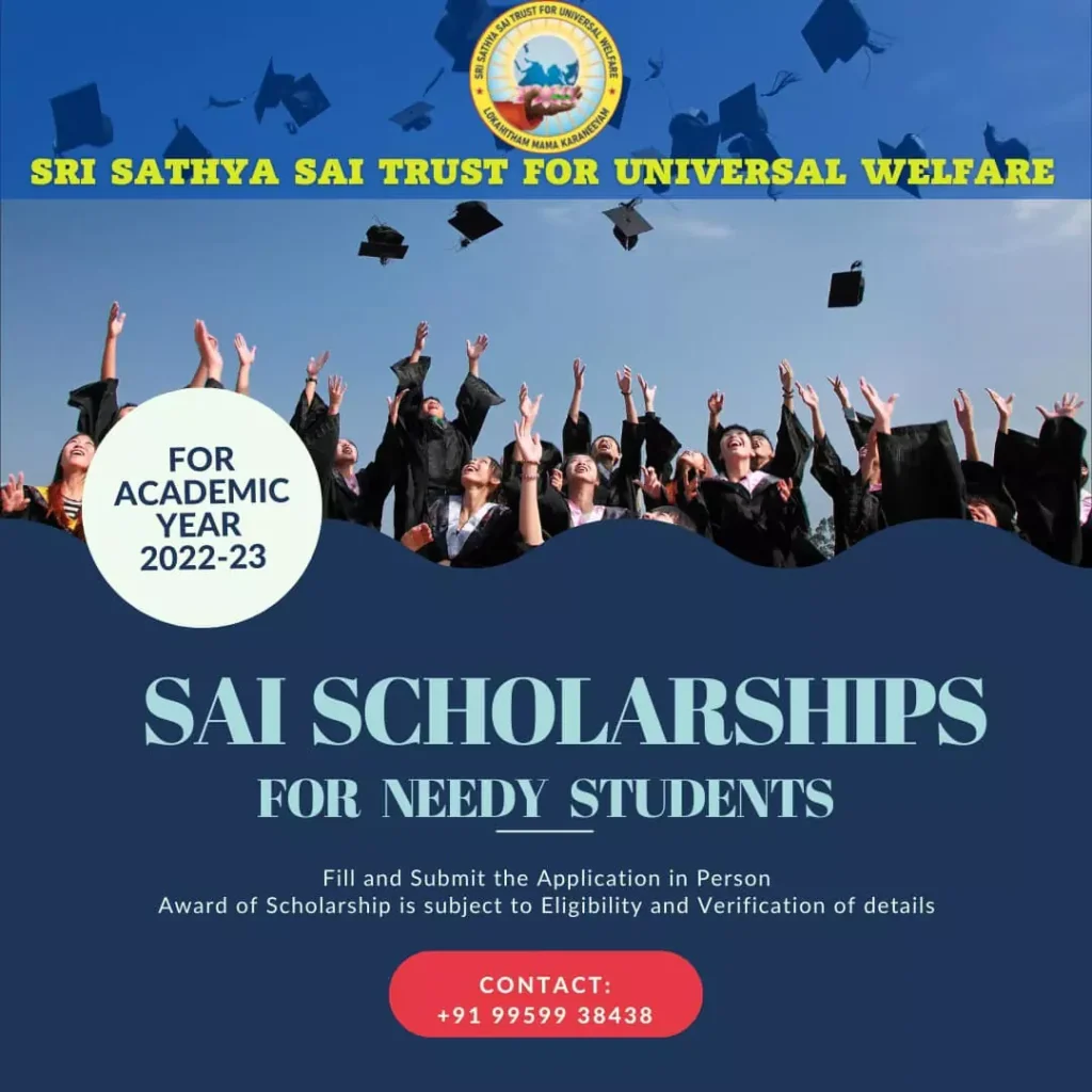 In a move to further support the cause of education for students from economically challenged background, Sri Sathya Sai Trust For Universal Welfare announces ‘Sai Scholarships’ programme for needy students for the academic year 2022-23.